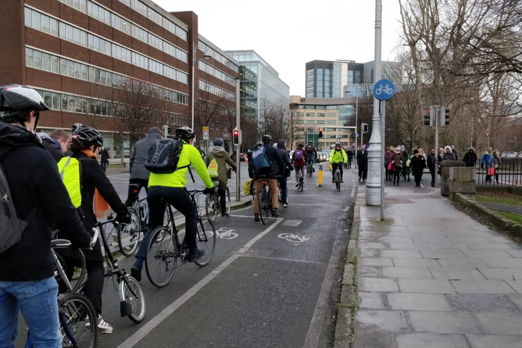 It’s clearly a very popular resource, especially during the rush hours, with thousands of bikes passing every hour – mostly with people heading to and from the Grand Canal Dock area. It gets so busy that as many as 50 bikes bunch up to wait at each phase of the traffic lights crossing the arterial roads such as Charlemont Street and Baggot Street.