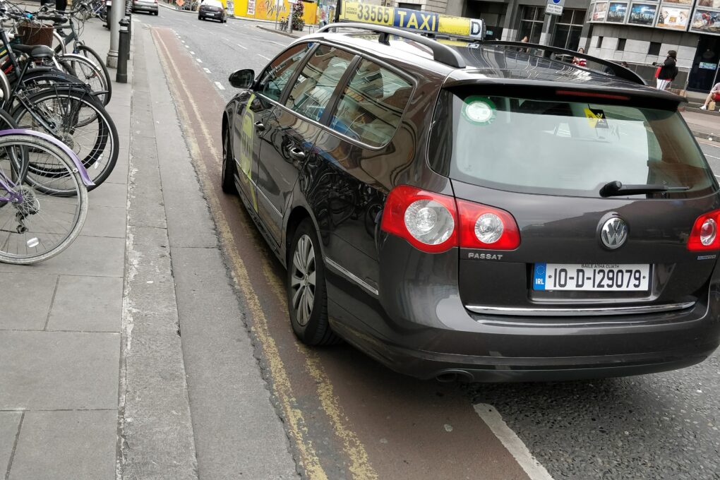 This is a typical cycle lane in Dublin city centre. It consists of a bit of paint at the side of the road.